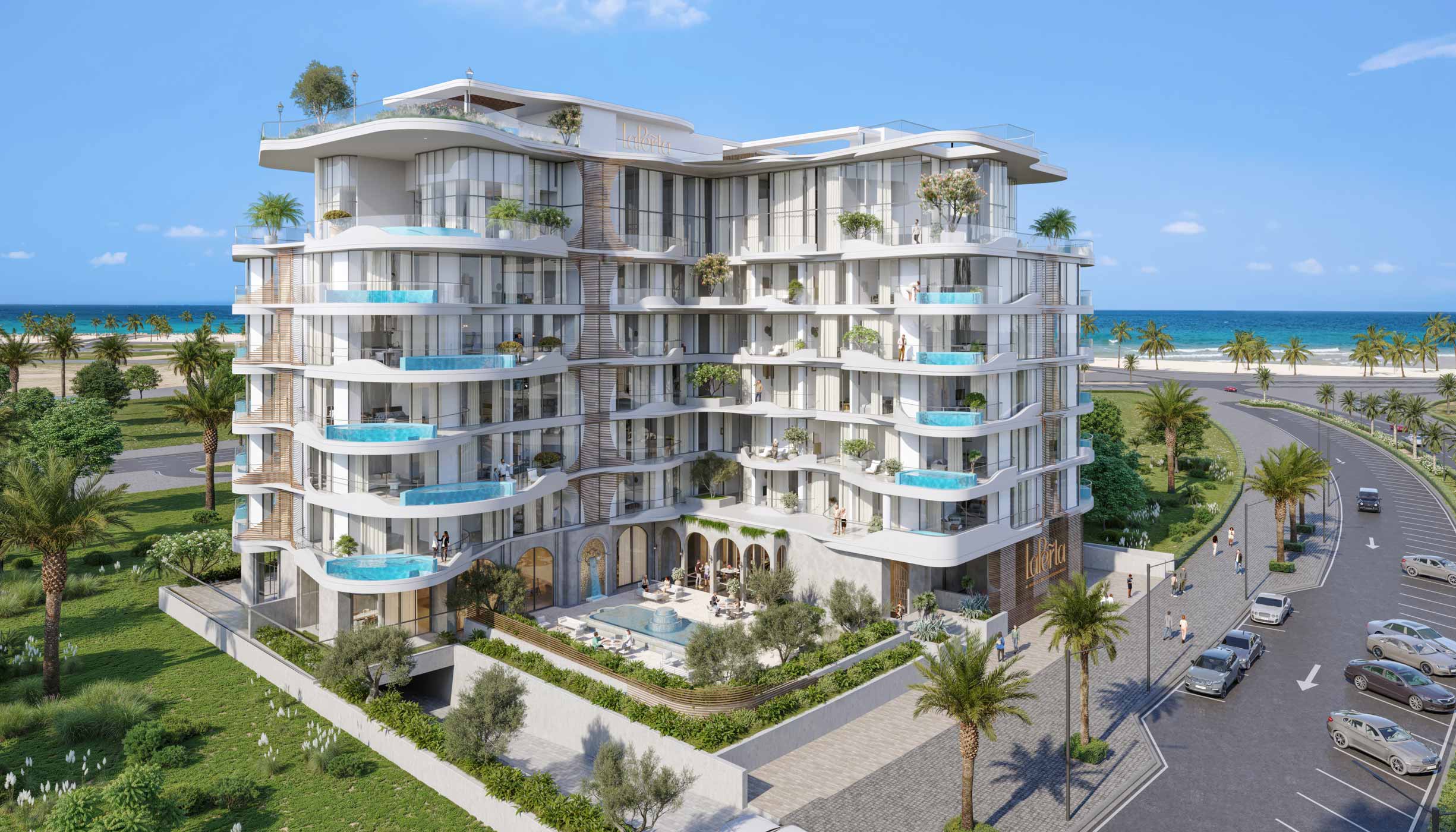 La Perla is designed not just as a building, but as part of a curated lifestyle ecosystem. Sunlight reflects off fluid balconies, landscaped terraces blur indoor–outdoor boundaries, and the architecture engages seamlessly with its coastal surroundings. Premium wellness and leisure amenities such as a rooftop pool, outdoor cinema, boutique spa, jacuzzi lounge, sauna & steam rooms, and state-of-the-art gym elevate the living experience to a resort-grade standard.
