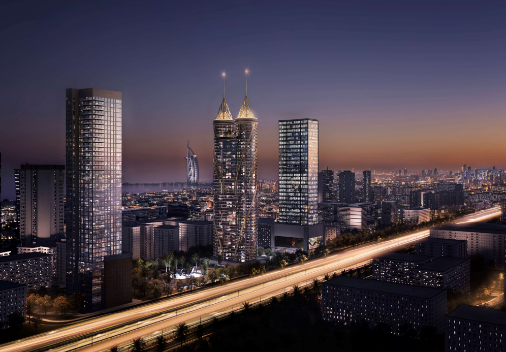 Scheduled for completion in Q1 2026, the development comprises 448 units across 44 floors, supported by four basement levels and podium-level amenities. The project offers a curated mix of 1-bedroom, 2-bedroom, and exclusive 4-bedroom study penthouses, with panoramic views including Sheikh Zayed Road, Palm Jumeirah, Burj Al Arab, Downtown skyline, and sea-facing orientations.